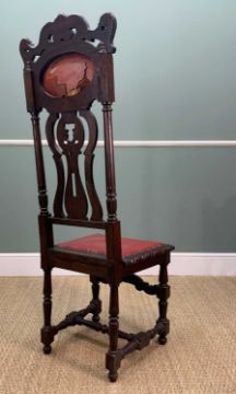 PAIR 19TH C. WILLIAM & MARY STYLE OAK HALL CHAIRS, 140cms (h)Provenance: consigned via West WalesComments: splits, leather headrests worn, inspection advised