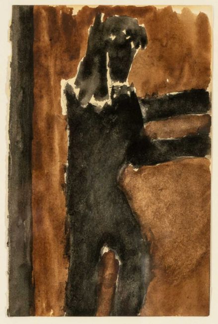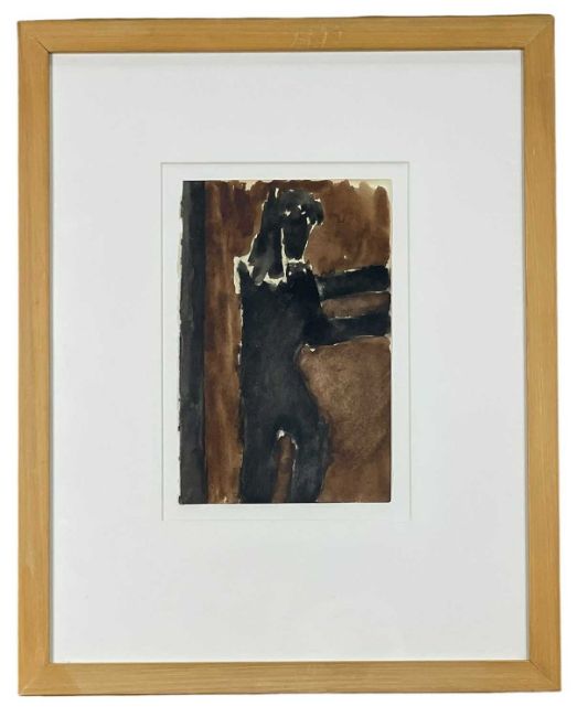 ‡JOSEF HERMAN OBE RA (Polish, lived Wales 1911 - 2000) watercolour - portrait of standing figure, on Goldmark Gallery label, Rutland, 20 x 13cmsProvenance: private collection Vale of GlamorganComments: framed and glazed