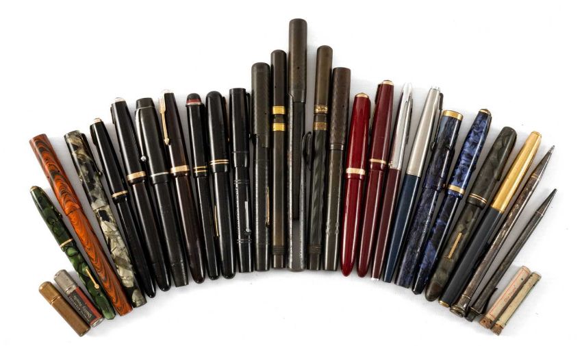 GROUP OF VARIOUS PENS including fountain pens by Blackbird, Parker, Swan, Conway Stewart, Waterman's, Jackdaw, Onoto, Burnham, Esterbrook, silver plated propelling pencils etcProvenance: private collection CeredigionComments: wear / marks / dents overall, viewing recommended