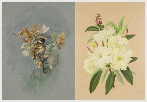 ‡ D. BOVEY watercolour - a bunch of rhododendrons, signed, 49 x 35cms, framed and glazed, GEORGE ROE watercolour - entitled verso, 'Stonechat', signed with initials, 39 x 29cms, framed and glazed (2)Provenance: private collection ConwyComments: in description