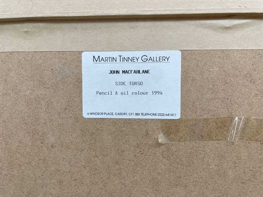 ‡JOHN MACFARLANE (b.1948) pencil and oil colour on paper - entitled verso 'Side Torso' on Martin Tinney Gallery label, signed and dated '94, 19.5 x 23cmsProvenance: private collection Vale of GlamorganComments: framed and glazed, ready to hang