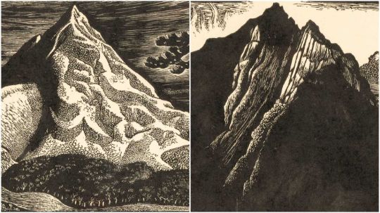 ‡JOHN PETTS (1914-1991) two woodcuts - entitled, ''Cnicht, Aberglaslyn' and 'Crib Goch, Yr Wyddfa', similar sizes, 12 x 14cms eachProvenance: private collection Isle of SkyeComments: some paper discoloration, framed, glazed