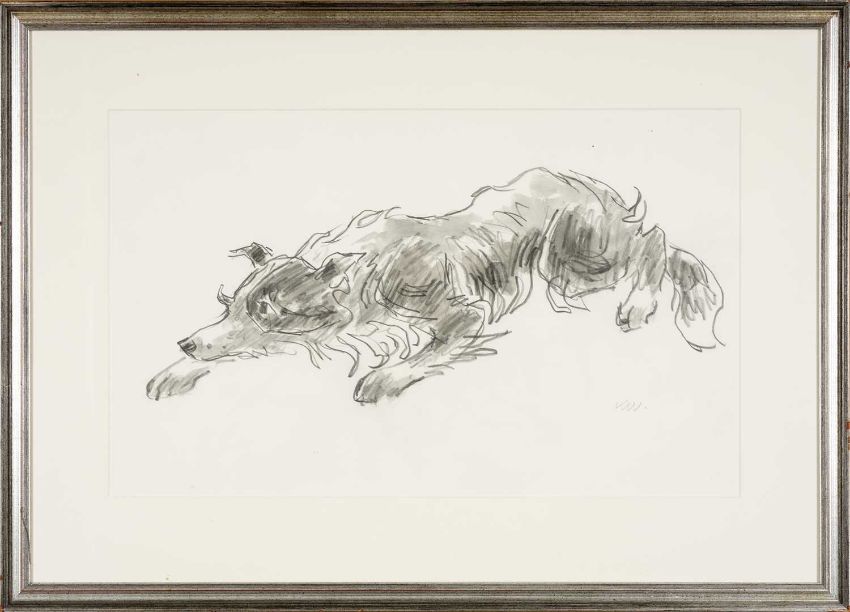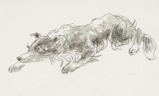 ‡SIR KYFFIN WILLIAMS RA (1918-2006) watercolour - entitled verso 'Sheepdog at Work II' on Thackeray Gallery label, signed with initials, dated verso 1995, 34 x 56cmsProvenance: private collection ConwyComments: framed and glazed