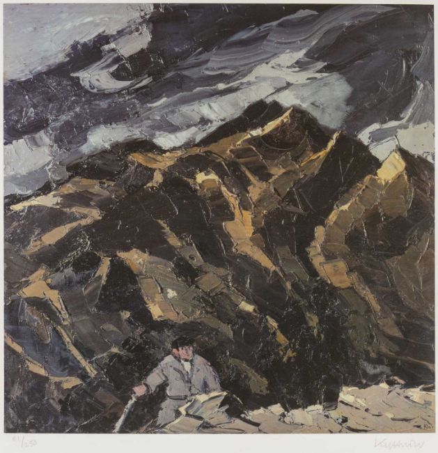 ‡SIR KYFFIN WILLIAMS RA (1918-2006) limited edition (61/250) print - farmer below Snowdon, fully signed in pencil, 56 x 56cmsProvenance: private collection CheshireComments: some marks around the white border, unframed, in cellophane sleeve