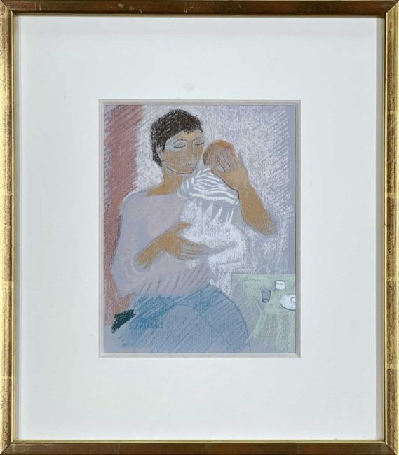 ‡CLAUDIA WILLIAMS (1933-2024) pastel - entitled verso, 'Mother and Young Baby' on Martin Tinney Gallery label, signed, dated verso 1998, 21 x 16.5cmsProvenance: private collection Isle of SkyeComments: framed, glazed