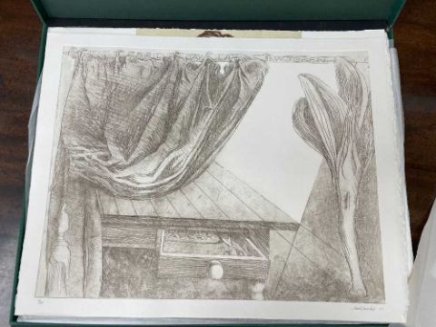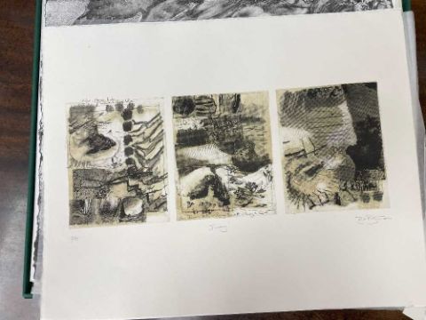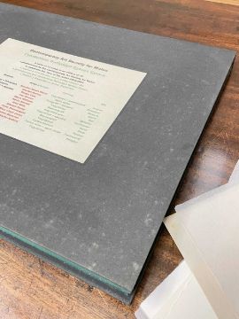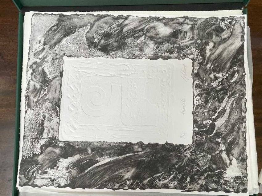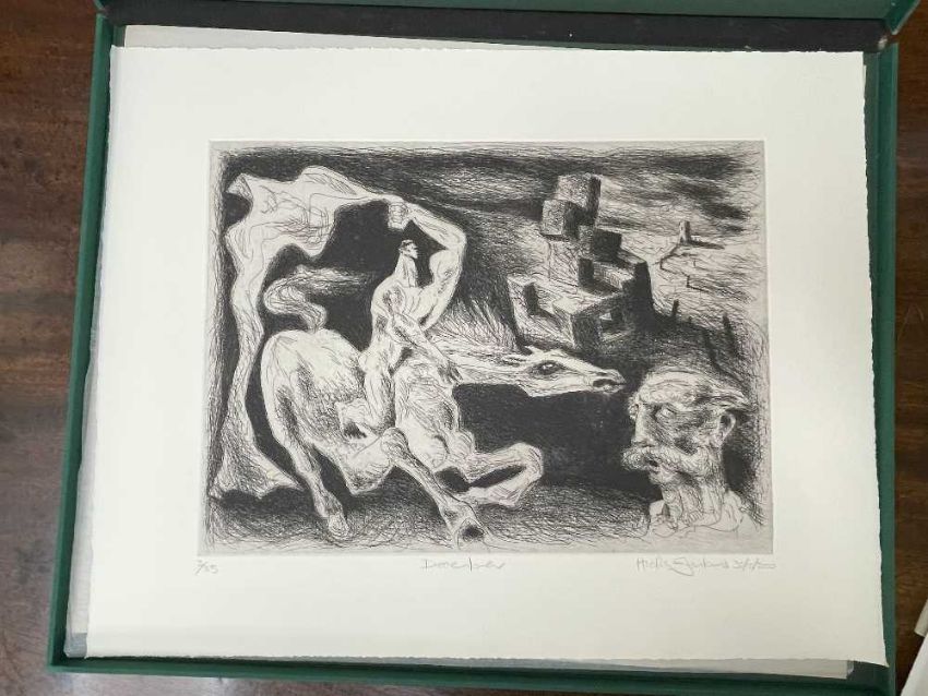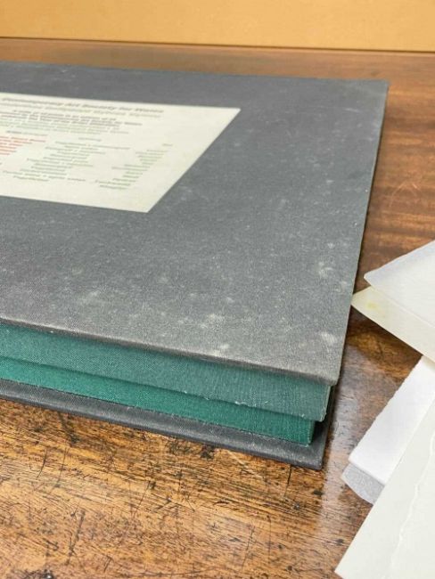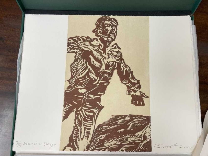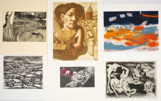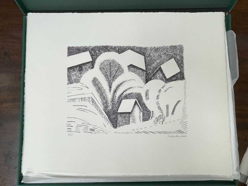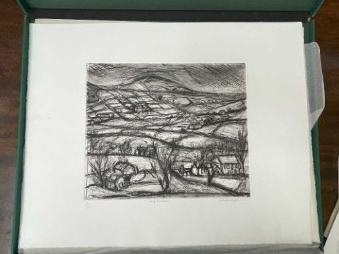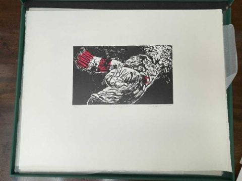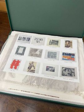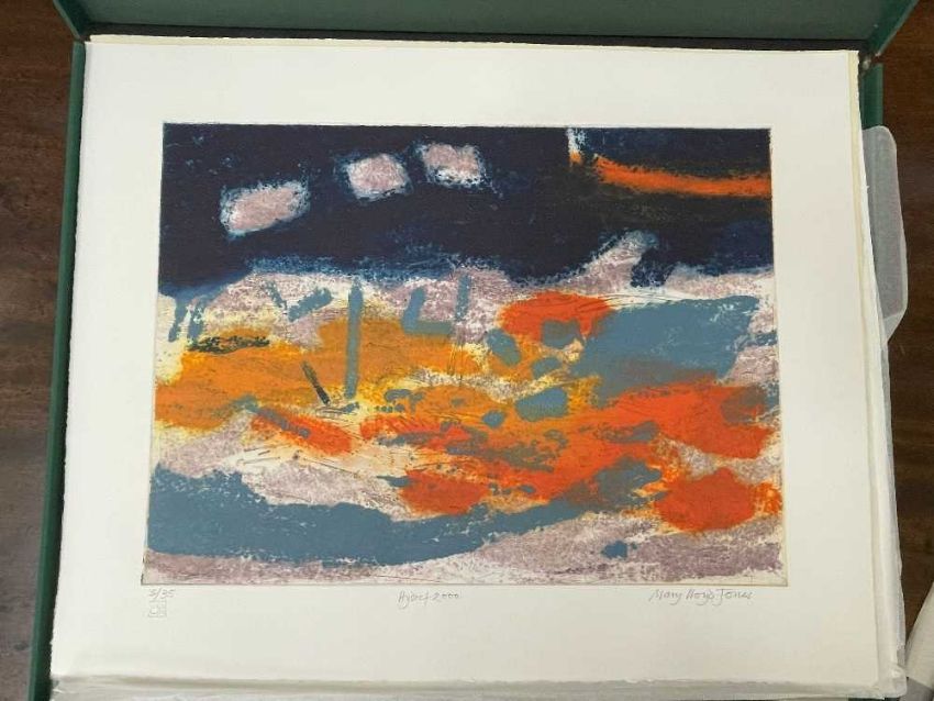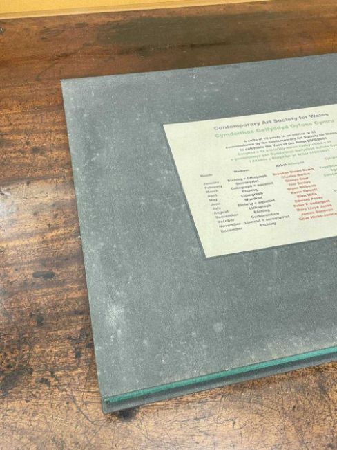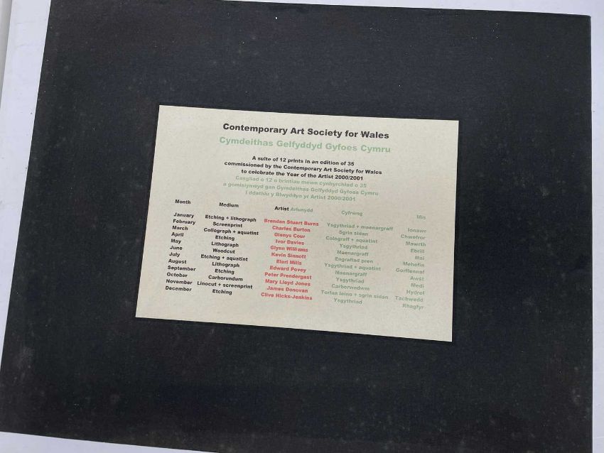FOLIO CONTEMPORARY ART SOCIETY FOR WALES (2000-2001) limited edition (3/35) prints - a suite of twelve prints commissioned by the Contemporary Art Society for Wales to celebrate the Year of the Artist 2000/2001, artists include Brendan Stuart Burns, Charles Burton, Glenys Cour, Ivor Davies, Glynn Williams, Kevin Sinnott, Eleri Mills, Edward Povey, Peter Prendergast, Mary Lloyd Jones, James Donovan and Clive Hicks-Jenkins, each is signed and numbered by the artist, 40 x 51cms eachProvenance: private collection CardiffComments: light shelf wear on case Condition Report:one print has a small mark possilbly foxing. The case although structually fine has mildew spots all over