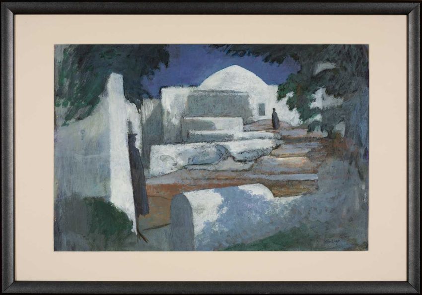 ‡JOHN ELWYN (1916-1997) acrylic on paper - entitled 'Patterns on Patmos III (Night)', signed, 34.5 x 52cmsProvenance: private collection CeredigionComments: framed and glazed, ready to hang