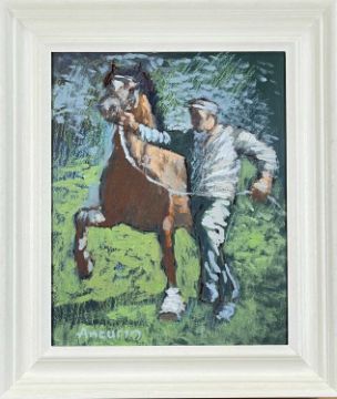 ‡ANEURIN JONES (1930-2017) oil on board - Welsh cob and handler, signed, 40 x 32cmsProvenance: private collection Carmarthenshire, bought directly from artistComments: framed, ready to hang