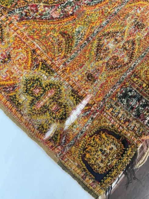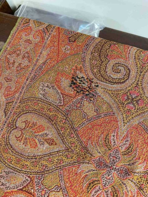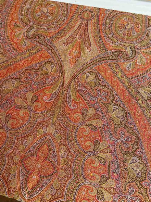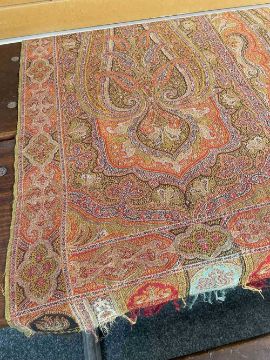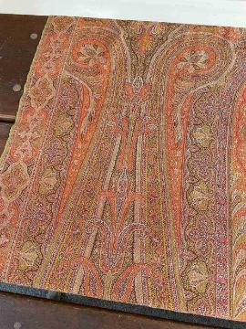 TRADITIONAL LARGE WELSH PAISLEY CASHMERE WOOLEN SHAWL (SIÔL), possibly cotton silk and fine wool, 300 x 170cmsProvenance: private collection Ynys Môn (Anglesey)Comments: colour good, condition good, small area of potential darning (approx. 4 x 4cms) to middle right, small area of broken thread to bottom right