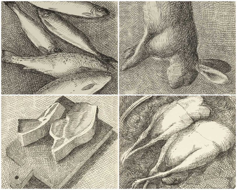 ‡ CHARLES BURTON (b.1929) set of four limited edition (artist proof) etchings - fish, hare, chopping board with meat, and poultry, all signed in pencil, all 30 x 20cms (4)Provenance: private collection Vale of GlamorganComments: all four unframed