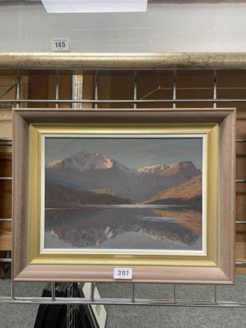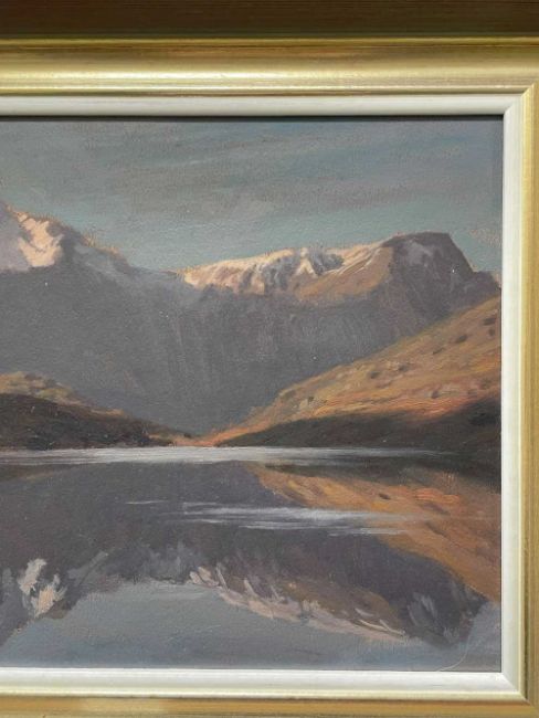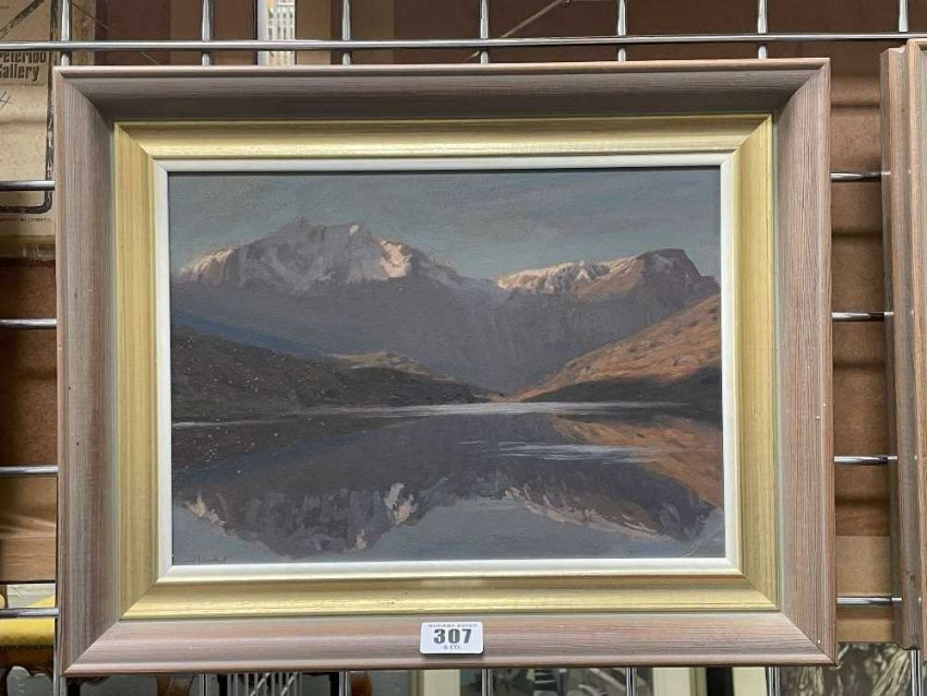 ‡ DAVID WOODFORD (b.1938) oil on board - entitled verso, 'Early Winter, Llyn Ogwen', signed, 20.5 x 29cmsProvenance: private collection GwyneddComments: framed