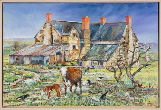 ‡ALEX WILLIAMS (b.1942) oil on canvas - entitled verso 'Vacant Farm', signed with initials, fully signed and dated 2024 verso, 50.5 x 66.5cmsProvenance: private collection Isle of WightComments: framed