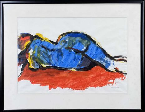 ‡VIVIENNE WILLIAMS (b.1955) acrylic on paper - entitled verso, 'Lying' on Attic Gallery label, signed, 39 x 57cmsProvenance: private collection South WalesComments: framed, glazed