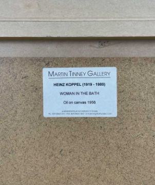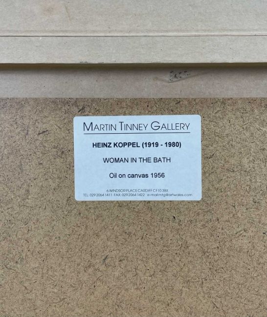 ‡HEINZ KOPPEL (1919-1980) oil on canvas - entitled verso 'Woman in a Bath', signed with initials, dated verso 1956, 72 x 57xmsAuctioneer's Note: Born in Berlin in 1919 to Jewish parents, Koppel moved to Prague with his family after the Nazi takeover, where he began his training as an artist. In 1938, he fled to Britain with his father, stepmother, and siblings, but his mother Paula, who suffered from debilitating arthritis, was unable to make the journey. Tragically, she was left behind in Nazi-occupied Czechoslovakia and sent to her death at the Treblinka concentration camp in Poland.Koppel’s father, Joachim, established a zip manufacturing company at Treforest Trading Estate, which was requisitioned to produce aircraft components during WWII. After settling in London, Koppel studied under fellow émigré artist Martin Bloch. In 1944, he moved to Dowlais, near Merthyr Tydfil, where he taught art and focused on his painting. His reputation as an artist grew, and he exhibited at the Modern Art Gallery in London alongside other European refugees.He was a founding member of the 56 Group, whose primary aim is the exhibition and promotion of contemporary Welsh art and artists. In his later years, Koppel moved to Cwmerfyn near Aberystwyth, where he continued to paint until his death at the age of 61 in 1980.Provenance: private collection PembrokeshireComments: framed and glazed