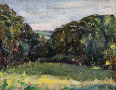 ‡JOHN CYRLAS WILLIAMS (b.1902) oil on canvas - landscape, 35 x 45cmsProvenance: private collection South WalesComments: canvas restoration, framed