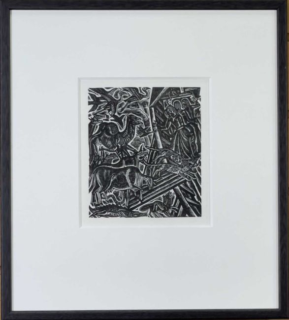 ‡DAVID JONES (1895-1974) limited edition (36/80) wood engraving - entitled verso 'Animals Entering the Ark (From The Chester Play of The Deluge)' on Martin Tinney Gallery label, 18.5 x 16cmsProvenance: private collection Vale of GlamorganComments: framed and glazed, ready to hang