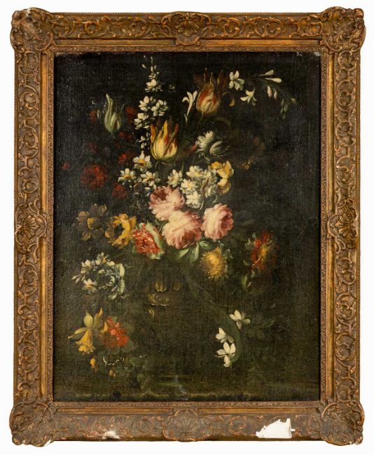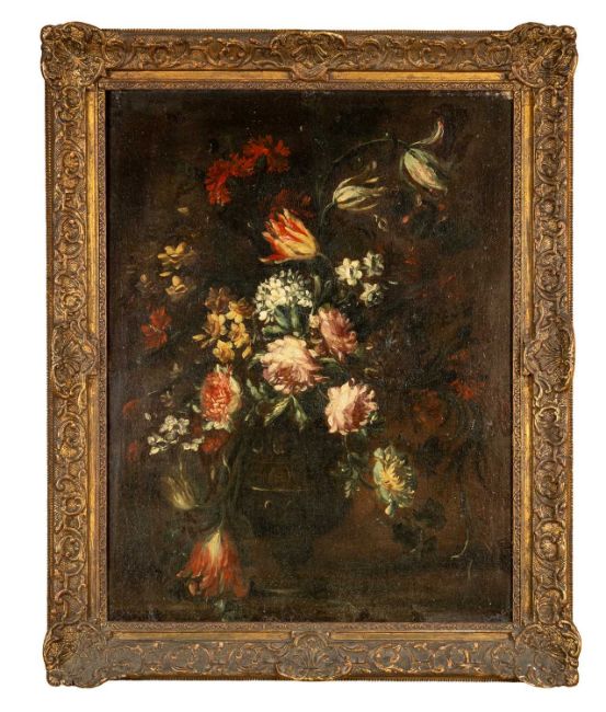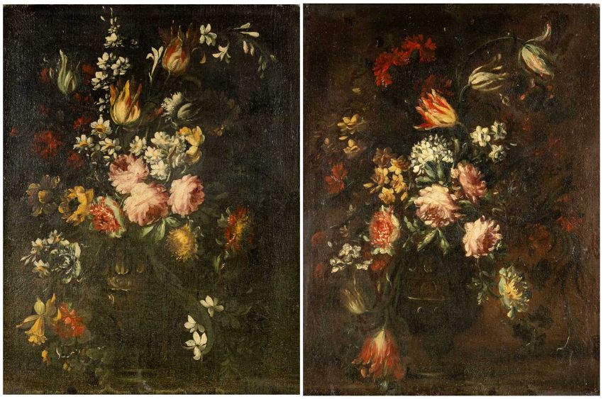 18TH CENTURY FLEMISH SCHOOL oil on canvas - still life of flowers in a vase; and a companion by the same hand, 66 x 52cms (2)Provenance: private collection CardiffComment: frame with losses.