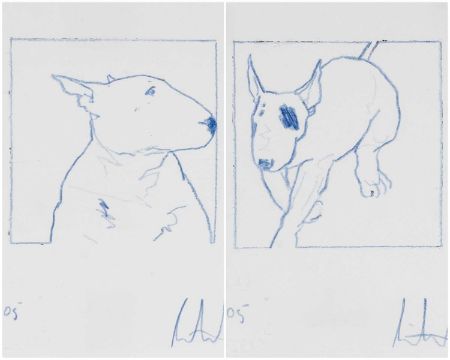 RAY RICHARDSON (b. 1964) pencil - 'Sonny' and 'Streetrunner', Bull Terriers, signed and dated '05, artist's blind stamp, 16 x 13cm (2)Provenance: private collectionComments: box framed ready to hang