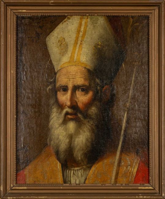17TH/18TH CENTURY ITALIAN SCHOOL oil on canvas - head and shoulders portrait of a cleric, possibly St. Isidore of Seville, 44 x 35cmsProvenance: private collection MonmouthshireComments: laid down, later framed, cleaned, some paint loss, inspection advised