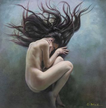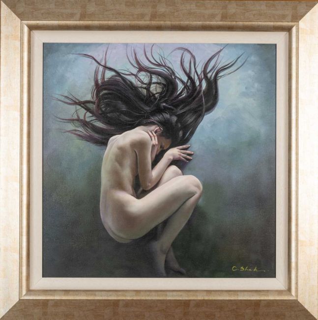 ‡CHUNG SHEK (British, Contemporary) oil on canvas - nude female curled in foetal position, signed, 58.5 x 58.5cmsProvenance: private collection Pembrokeshire, bought by vendor from a Bristol Gallery in 2006Comments: good overall, viewing recommended