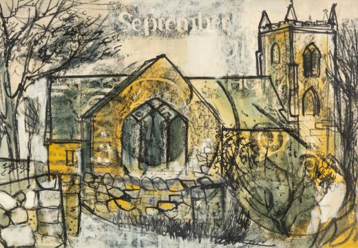 GWILYM PRICHARD mixed media and brass rubbing on paper - entitled verso 'September Church', fully signed, 34 x 49cms