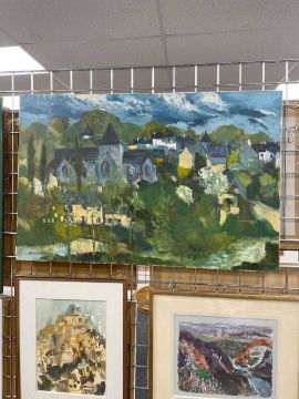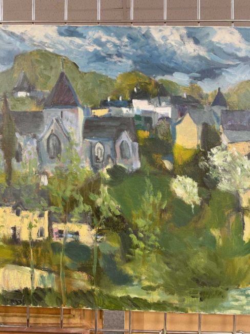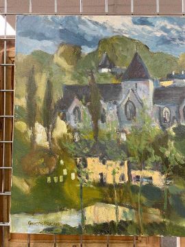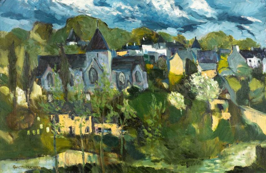 GWILYM PRICHARD oil on canvas - Rochefort en Terre, Brittany, with church, fully signed, 60 x 92cmsAuctioneer's Note: Rochefort en Terre was Gwilym and Claudia's home for many years, the spire of the fifteenth century Church of Notre-Dame-de-la-Tronchaye rises above the village.