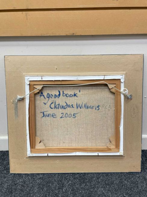 CLAUDIA WILLIAMS oil on canvas - entitled verso 'A Good Book', signed with initials, fully signed and dated verso 2005, 37 x 44cmsComments: framed