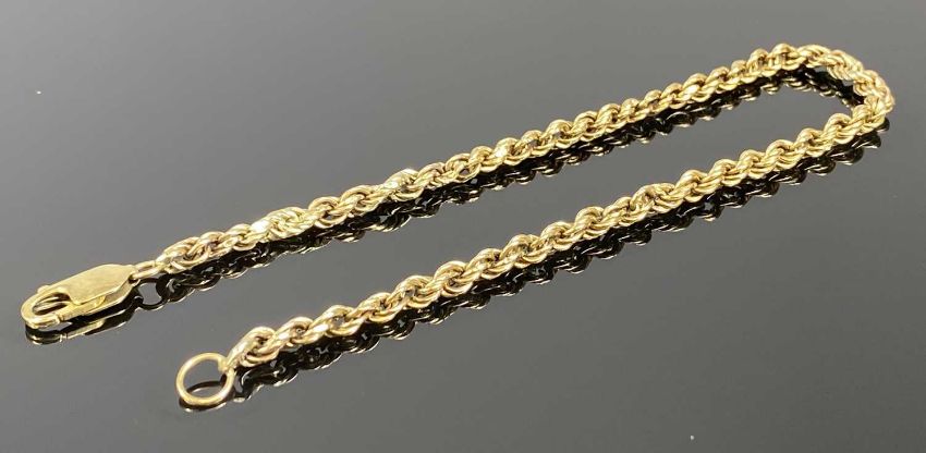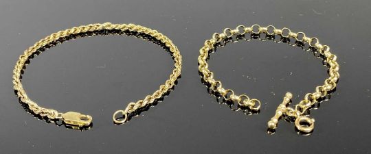 TWO 9CT GOLD BRACELETS, curb link with T-bar, 20cms (l), and rope twist with lobster claw clasp, 23cms (l), 11.3gms grossProvenance: private collection Conwy