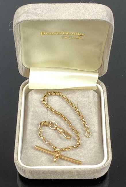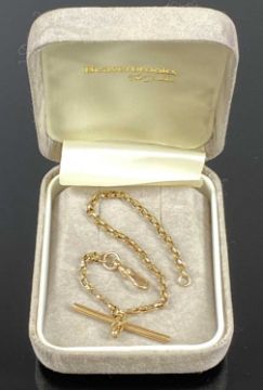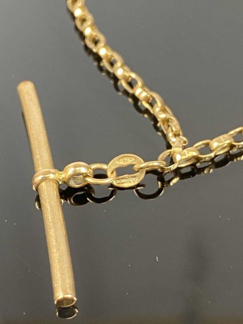 9CT GOLD CURB LINK BRACELET with spring clip and T-bar, 19cms (l), 3.6gmsProvenance: private collection Conwy