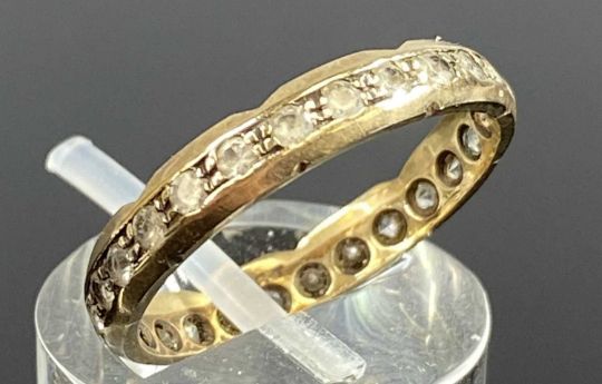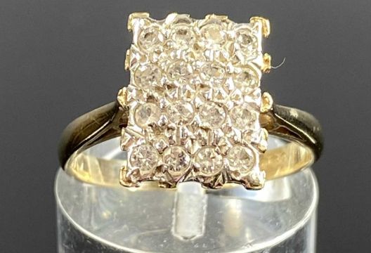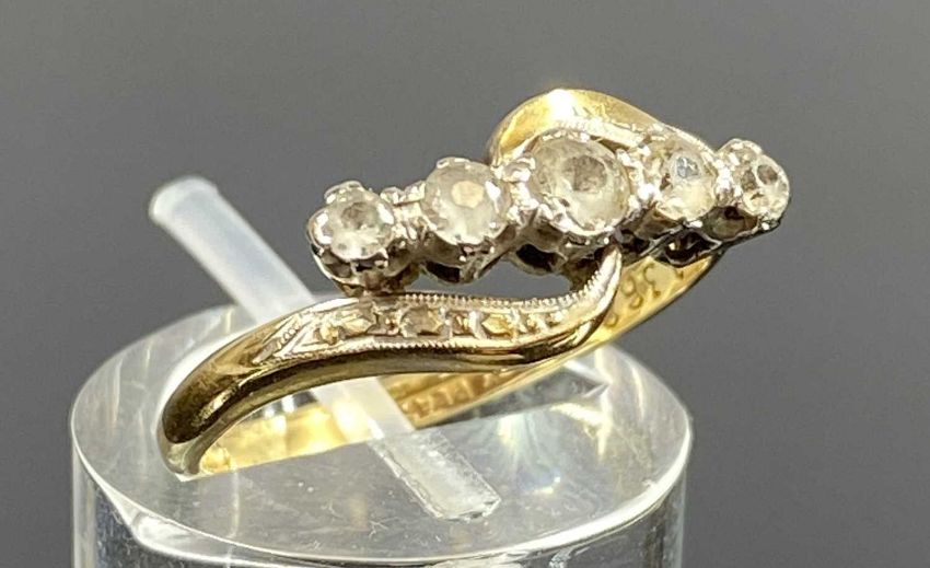 GROUP OF DRESS RINGS, including 9ct gold pink and clear cluster, clear five-stone cross-over, 9ct clear stone cluster, and two others unmarked, hallmarked rings 8.5gmsProvenance: private collection Ynys Môn