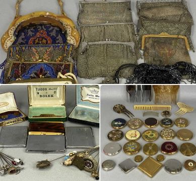 ASSORTED ANTIQUE & VINTAGE COLLECTABLES, including beadwork and mesh evening bags, powder compacts, hat pins, hair combs, cigarette cases, and watch boxesProvenance: private collection Conwy