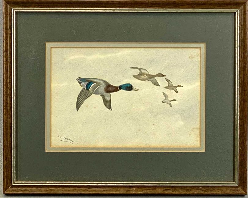 PHILIP RICKMAN (British 1891-1982) watercolour - mallard ducks in flight, signed lower left, 12.5 x 19cmsProvenance: private collection DenbighshireComments: framed and glazed