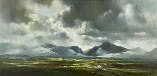 DAVID WESTON (1935-2011) oil on canvas - Snowdonia from Anglesey, signed and dated '70 lower right, 49 x 100cmsProvenance: private collection GwyneddComments: framed