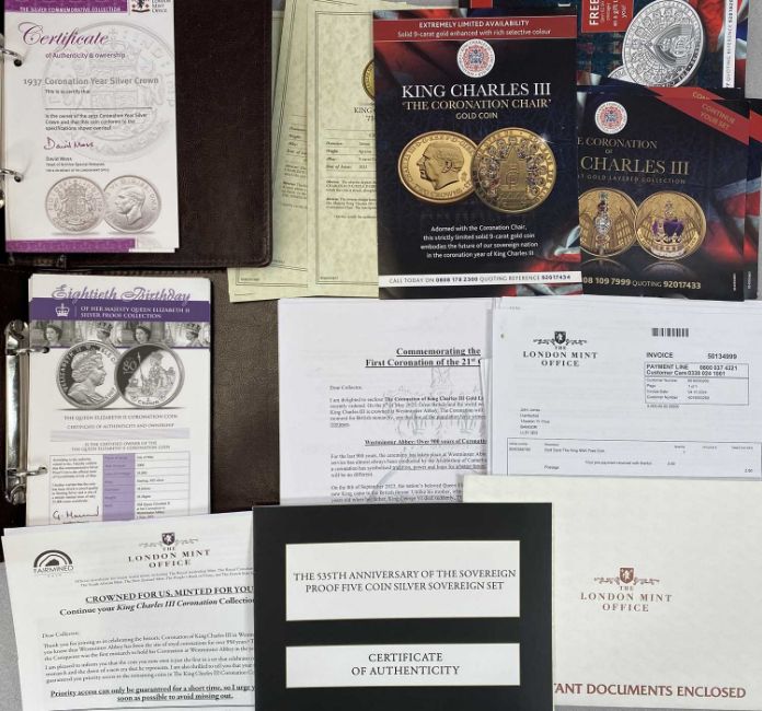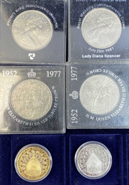 COIN COLLECTION, including cased set of six Queen Mother commemorative 2006 coins, five King Charles III Royal Mint encapsulated coins, various crowns, etc.Provenance: private collection Gwynedd