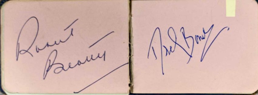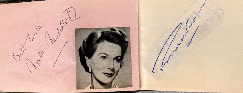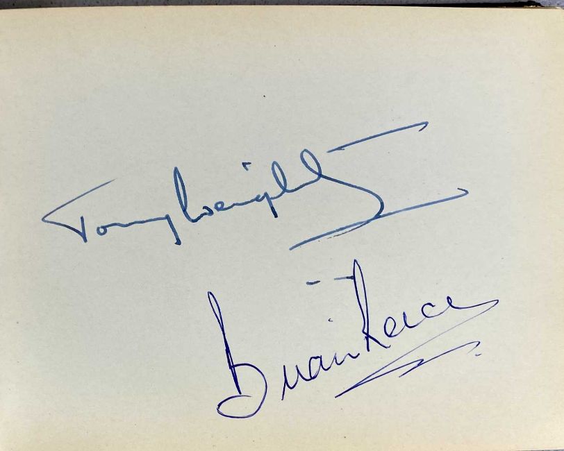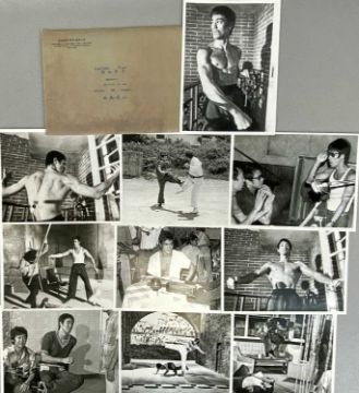 GROUP OF PHOTOGRAPHS OF FAMOUS ACTORS, including Julie Christie, Joan Collins, Brigitte Bardot, Virginia McKenna, Joanna Lumley, Sarah Miles, Sophie Ward, Glenda Jackson, Stephanie Beacham, Susannah York, Laurence Olivier, Christopher Lee, Charlton Heston, Anthony Hopkins, with colour photograph of Enola Gay autographed by the pilot, Duran Duran The Reflex Maxi-single signed by the band, two sets of photograph stills from Bruce Lee films Enter the Dragon and The Game of Death, and five vintage autograph albums with contentsProvenance: private collection Conwy