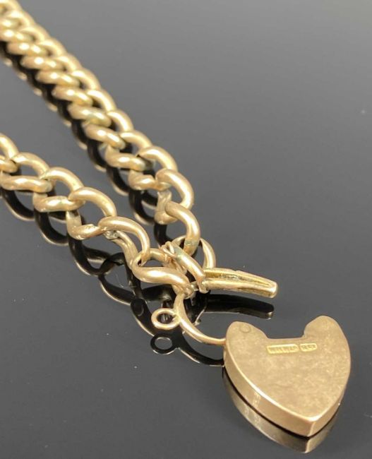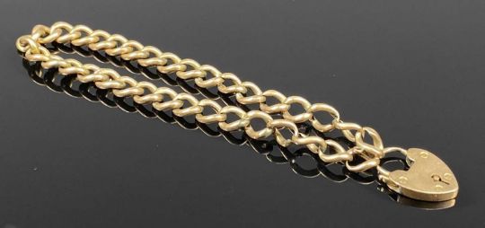 9CT GOLD CURB LINK BRACELET with heart shaped locket, 19cms (l), 8gmsProvenance: deceased estate Denbighshire
