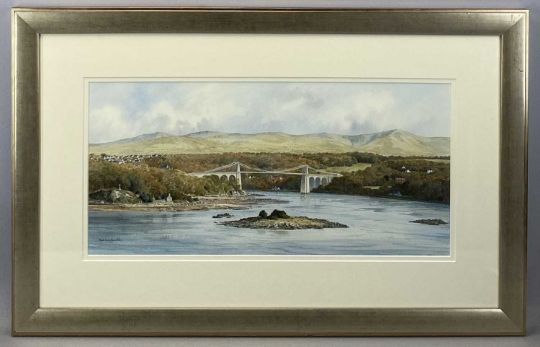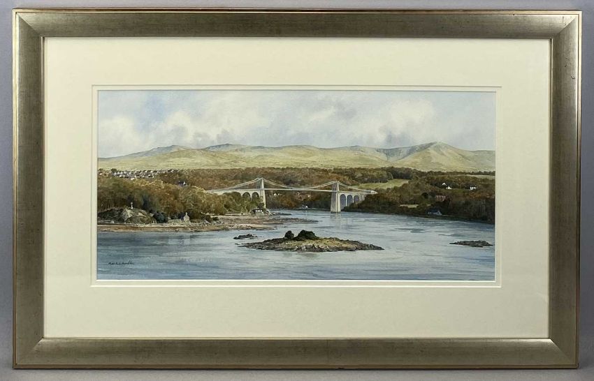 MAX A. S. HAMBLEN (British 20th century) watercolour - Menai Suspension Bridge, signed lower left,25.5 x 54cmsProvenance: private collection DenbighshireComments: framed and glazed