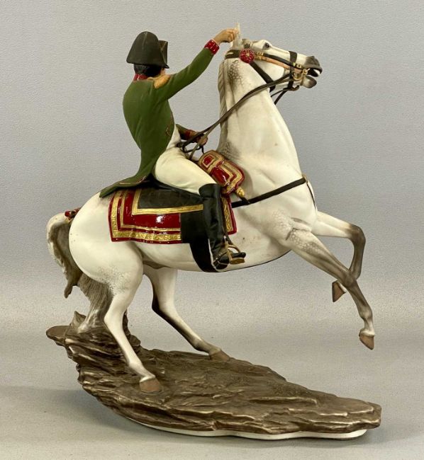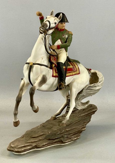 FRANKLIN MINT PORCELAIN EQUESTRIAN FIGURE, 'Napoleon at Waterloo', 39cms (h)Provenance: The Cornelia Bayley Collection from the historic Welsh Jacobean house, Plas Teg, Flintshire. Further auctions to follow including Plas Teg Principal Interiors, further details on this important Jacobean house and its clearance Welsh House Clearance of a Generation — Rogers Jones Co