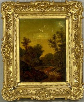 POSSIBLY 18TH CENTURY ENGLISH SCHOOL oil on board - landscape with figures in foreground, unsigned, 21 x 15cmsProvenance: private collection DenbighshireComments: framed