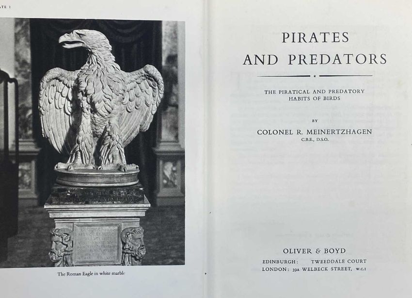 VINTAGE & ANTIQUARIAN ORNITHOLOGICAL & WILDLIFE BOOKS, including Meinertzhagen (Colonel R.) 'Pirates and Predators: The Piratical and Predatory Habits of Birds', Oliver & Boyd, London, 1959; Bonhote (J. Lewis) 'Birds of Britain', Adam & Charles Black, London, 1907; Chislett (Ralph) 'Northward Ho! - For Birds', Country Life, London, 1933; Mathew (Rev. Murray A.) 'The Birds of Pembrokeshire and its Islands', R. H. Porter, London, 1894, and othersProvenance: private collection Ynys Môn