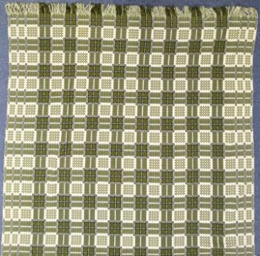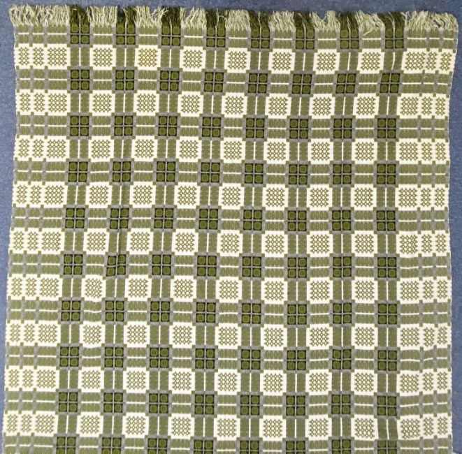 TRADITIONAL WELSH WOOLEN BLANKET, double sided with green, cream, grey, and black geometric pattern, fringed at two ends, 236cms²Provenance: private collection Denbighshire
