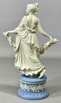 TWO WEDGWOOD 'THE DANCING HOURS' COLLECTION FIGURES, both white on pale blue jasper, limited edition (775/3000) 'Laurel Garland', and limited edition (772/3000) 'Ivy Garland', boxed with certificatesProvenance: private collection Conwy