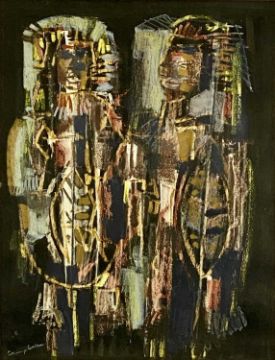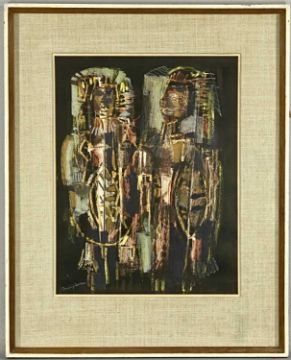 GEORGE CAMPBELL RHA (Irish, 1917-1979) pastel - entitled verso 'Warriors' on Ritchie Hendriks Gallery label, signed lower left, 42 x 32cmsProvenance: private collection DenbighshireComments: framed and glazed
