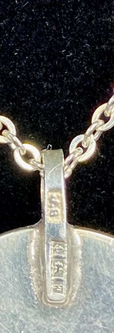 SILVER MOUNTED PORCELAIN PENDANT, hand painted portrait of girl with dove, hallmarked 1971, maker J.B., on fine silver chainProvenance: private collection Denbighshire