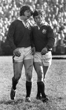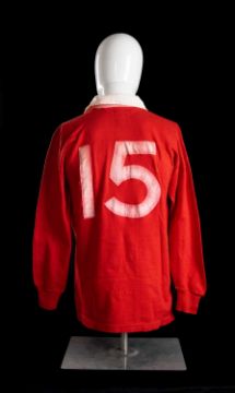 JPR WILLIAMS | BRITISH LIONS | 1971Jersey match-worn by JPR Williams, bears crest of the four unions with the English rose in indigo rather than red (1974) and with two labels to the interior for Umbro and Lillywhites as was the case in the 1971 tour. Stitched white number 15 to reverse. Red dye has run to white areas.The 1971 Lions were the first British team to win a major series abroad in the 20th Century and the only time the Lions have won a series in New Zealand. The tour was a huge success for British rugby and as a public relations exercise for the sport in the UK.In the 1991 Souvenir Programme for the 20th Anniversary of the tour, captain John Dawes wrote:“Throughout history certain events in sport achieve an everlasting place by virtue of the magnitude of the performance. In team sports in the UK such teams as the England World Cup Soccer Team in 1966, Britain’s Ryder Cup Team that regained the famous trophy, Ray Illingworth’s Team that regained the Ashes in Australia in 1971 are such fine examples. There are those who feel the achievements of the 1971 British Lions, in becoming the first UK Team to win a rugby series against the mighty All Blacks in New Zealand, deserves to rank alongside those achievements”.View full descriptionAdditional playing days images courtesy of Colorsport (Copyright)