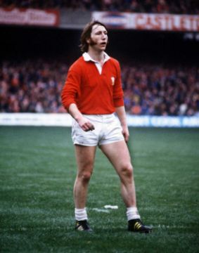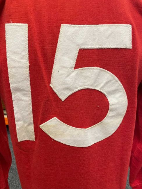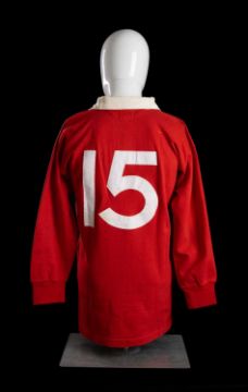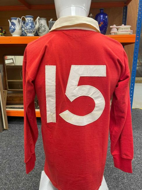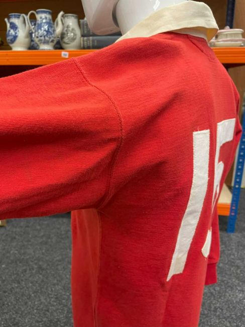 JPR WILLIAMS | WALES | 1979 | 50TH CAPTraditional Wales International Rugby Union match-worn jersey in red with white collar, embroidered ‘Ich Dien’ Prince of Wales feathers, white number 15 stitched to reverse. Umbro ‘The Choice of Champions’ label to inside collar. In good order without colour run or damage. Handwritten label to the interior specifying ‘50th Cap’.Believed to have been worn by JPR Williams for his 50th Welsh cap against Ireland on February 3rd, 1979. JPR was the newly appointed captain for the 1979 championship.The Five Nations Championship match, played at Cardiff Arms Park, was a close won 24-21 victory to Wales with tries for Allan Martin and Paul Ringer.The Welsh side for this championship was considered experimental on the back of the retirement of Gerald Davies, Phil Bennett, Terry Cobner and Gareth Edwards. Yet the Championship and Triple Crown was won again by Wales, with only a defeat by a single point away at France preventing Wales winning the Grand Slam. They were the champions for the second consecutive season and won a record twenty-first outright title. They won the Triple Crown for a record fourth successive season and extended their record number of Triple Crown wins to sixteen.This would be the last time that Wales won back-to-back championships until 2013.JPR was awarded a further five caps for Wales, he bowed out at 55 caps which was a new Welsh record at the time.Additional playing days images courtesy of Colorsport (Copyright)