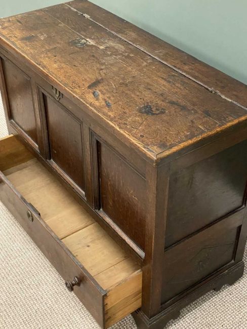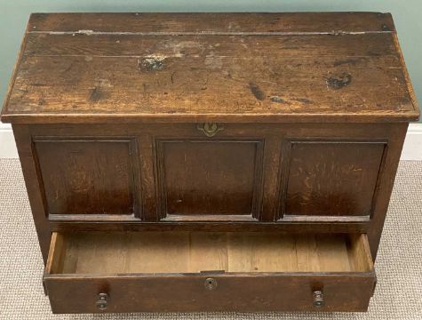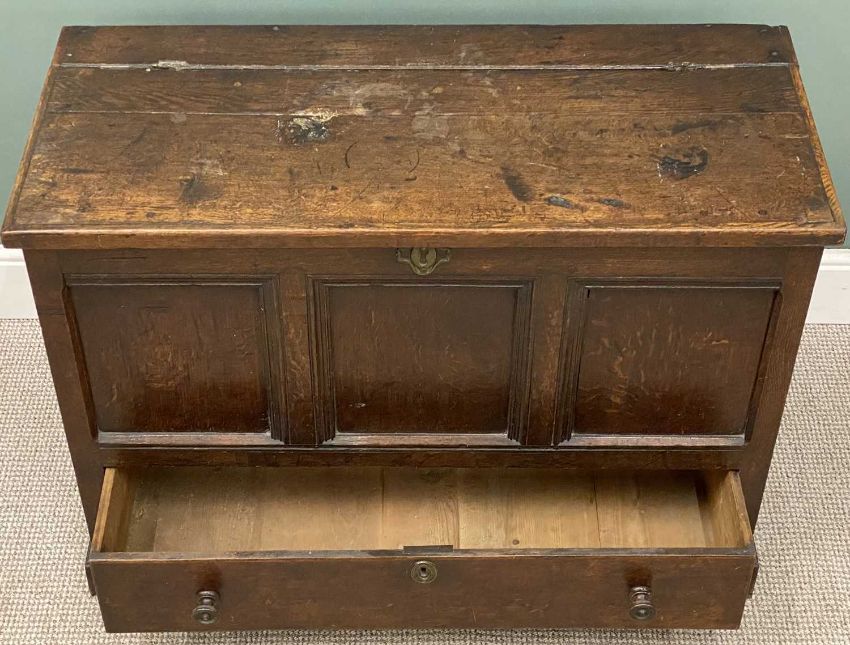 19TH CENTURY OAK MULE CHEST, lift top, three fielded panels, bracket feet, 78 (h) x 105 (w) x 45cms (d)Provenance: private collection Conwy