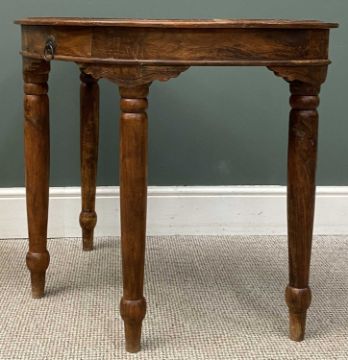EASTERN HARDWOOD HALF-MOON HALL TABLE, with single drawer, 73 (h) x 90 (w) x 46cms (d), and vintage circular topped side table on tripod base, 46 (h) x 59cms (diam.)Provenance: private collection Denbighshire