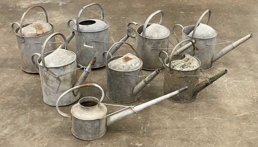 TWELVE ASSORTED GALVANISED METAL WATERING CANSProvenance: deceased estate Conwy