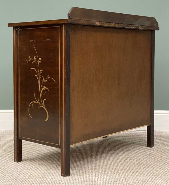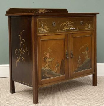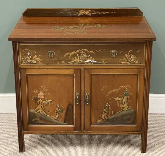 CHINOISERIE MAHOGANY BEDROOM SUITE, early 20th century, comprising single mirrored door wardrobe, 207 (h) x 122 (h) x 50cms (d), dressing table, 159 (h) x 106 (w) x 51cms (d), and washstand, 91 (h) x 91 (w) x 51cms (d)Provenance: deceased estate Conwy